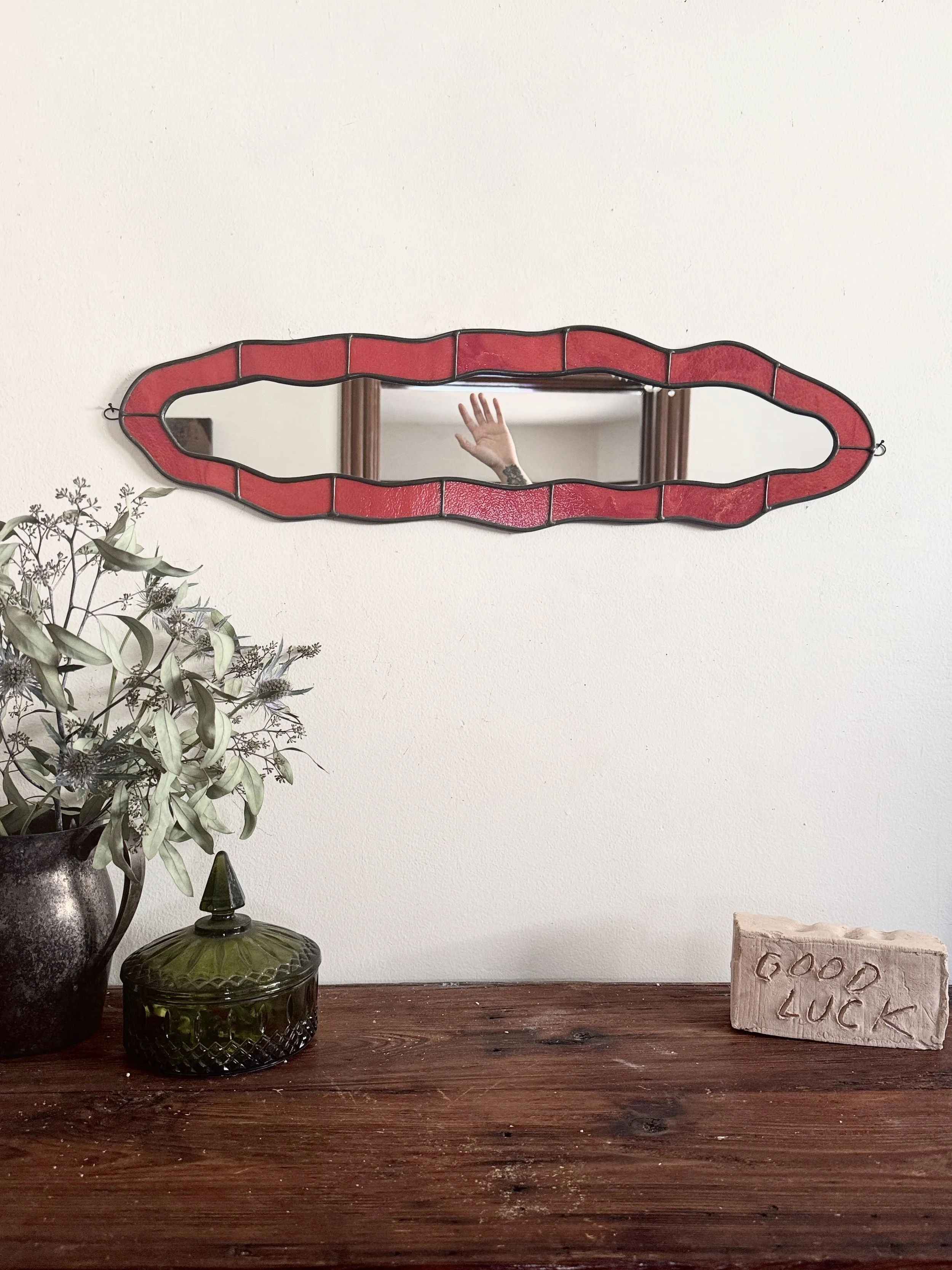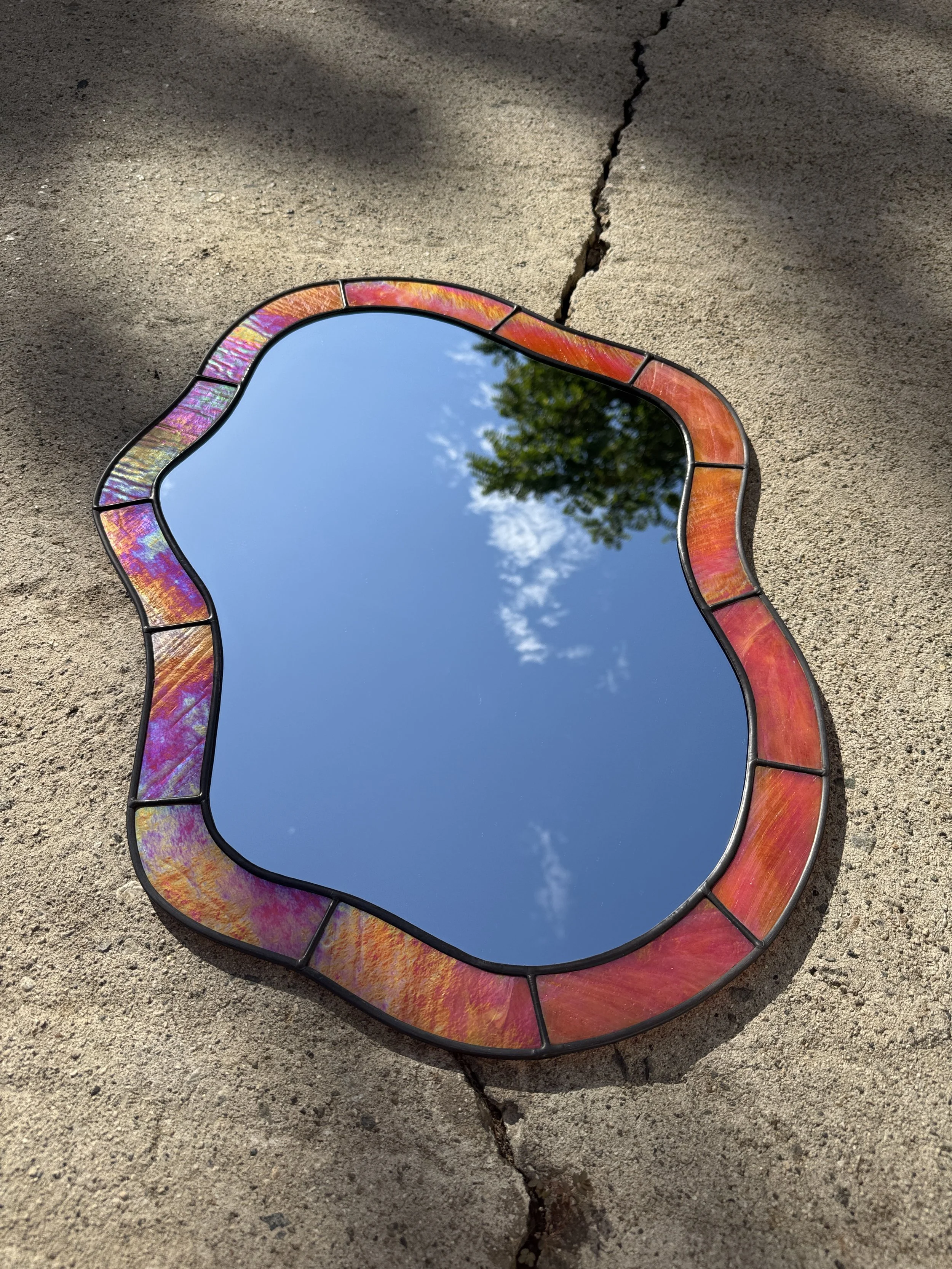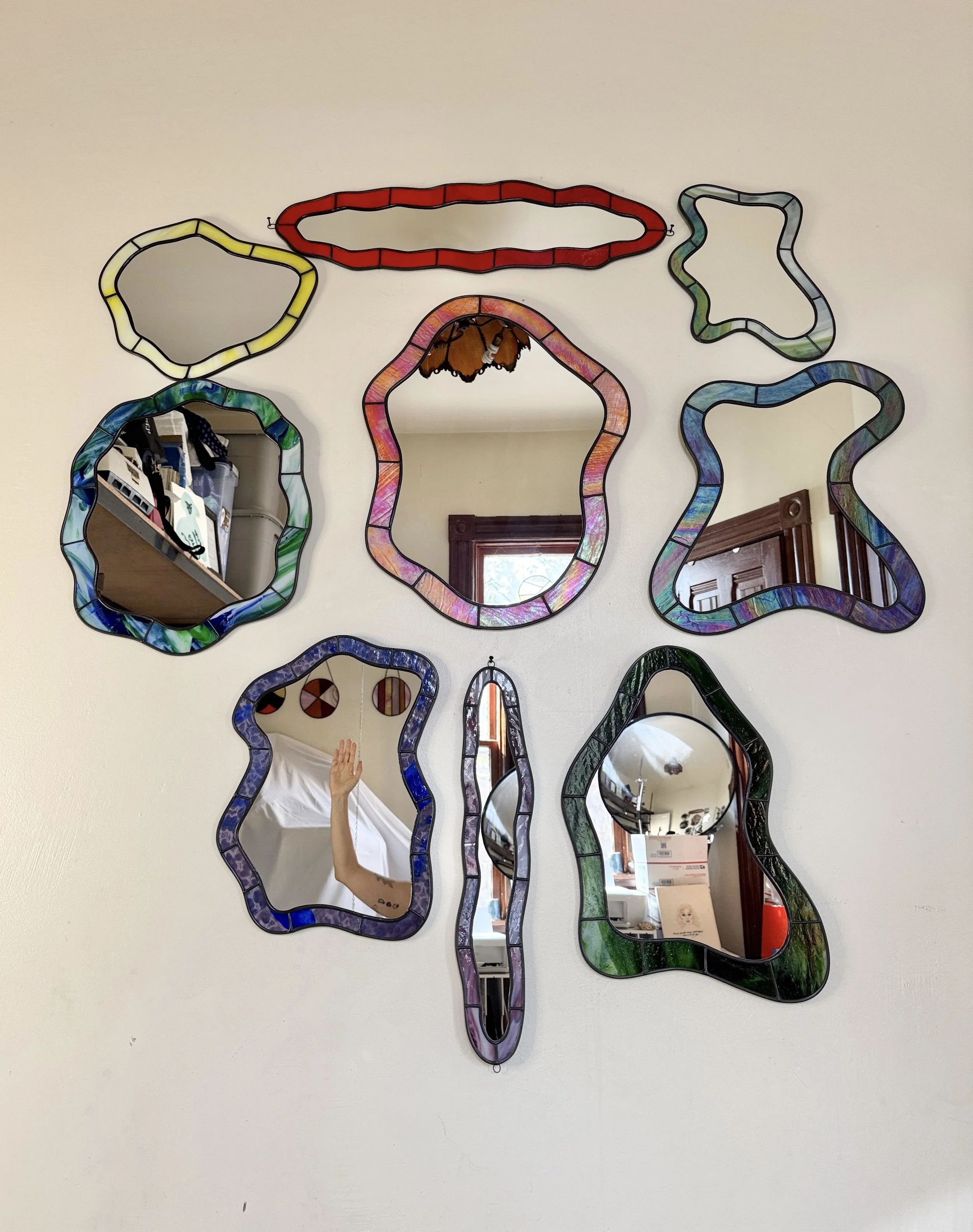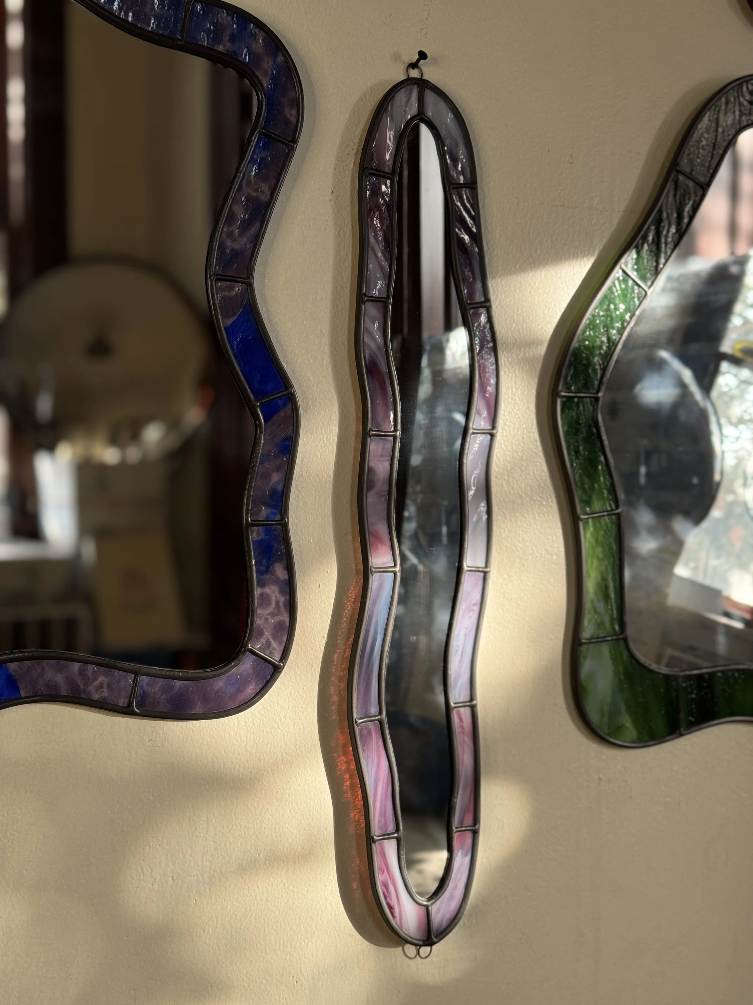 Shop Crevice Stained Glass Mirror // Raspberry Swirl $475.00 Sold out Silhouette Stained Glass Mirror // Iridescent Sea Moss $575.00 Sold out Lagoon Stained Glass Mirror // Ombré Lemon $600.00 Sold out Crevice II Stained Glass Mirror // Cherry $700.00 Sold out Curve Stained Glass Mirror // Emerald $775.00 Sold out Realm Stained Glass Mirror // Mottled Berry $775.00 Sold out Hourglass Stained Glass Mirror // Iridescent Sea $850.00 Sold out Sunburst Stained Glass Mirror // Earth $875.00 Sold out Lake Stained Glass Mirror // Iridescent Orange $1,175.00 Sold out *Imperfect (ly-perfect)* Silhouette Stained Glass Mirror // Iridescent Sunrise $275.00 Sold out RESERVED CAROLYN // Introduction to Stained Glass Class // Wavy Drops // Friday November 14th // 11am-3pm $300.00 Sold out
