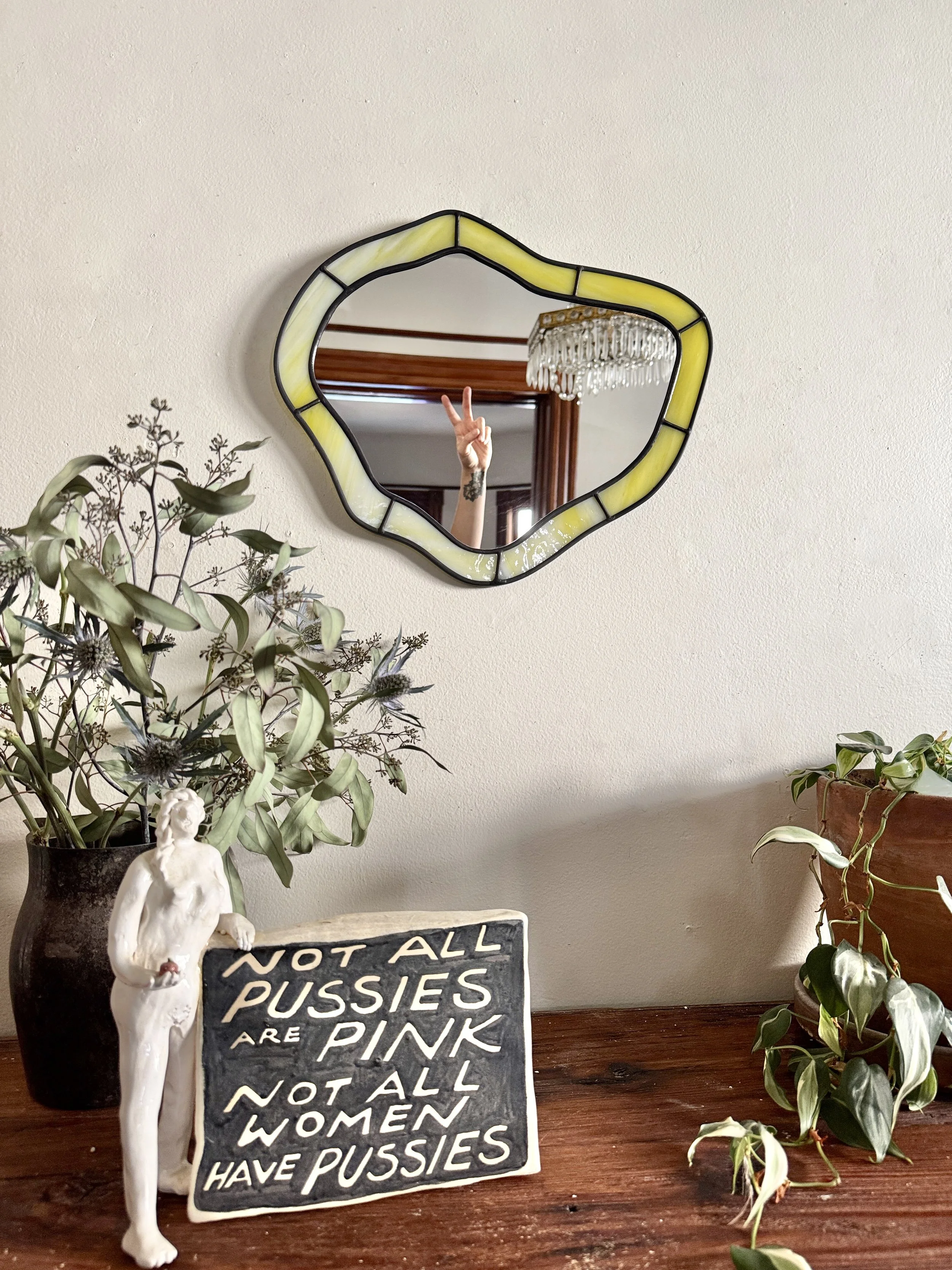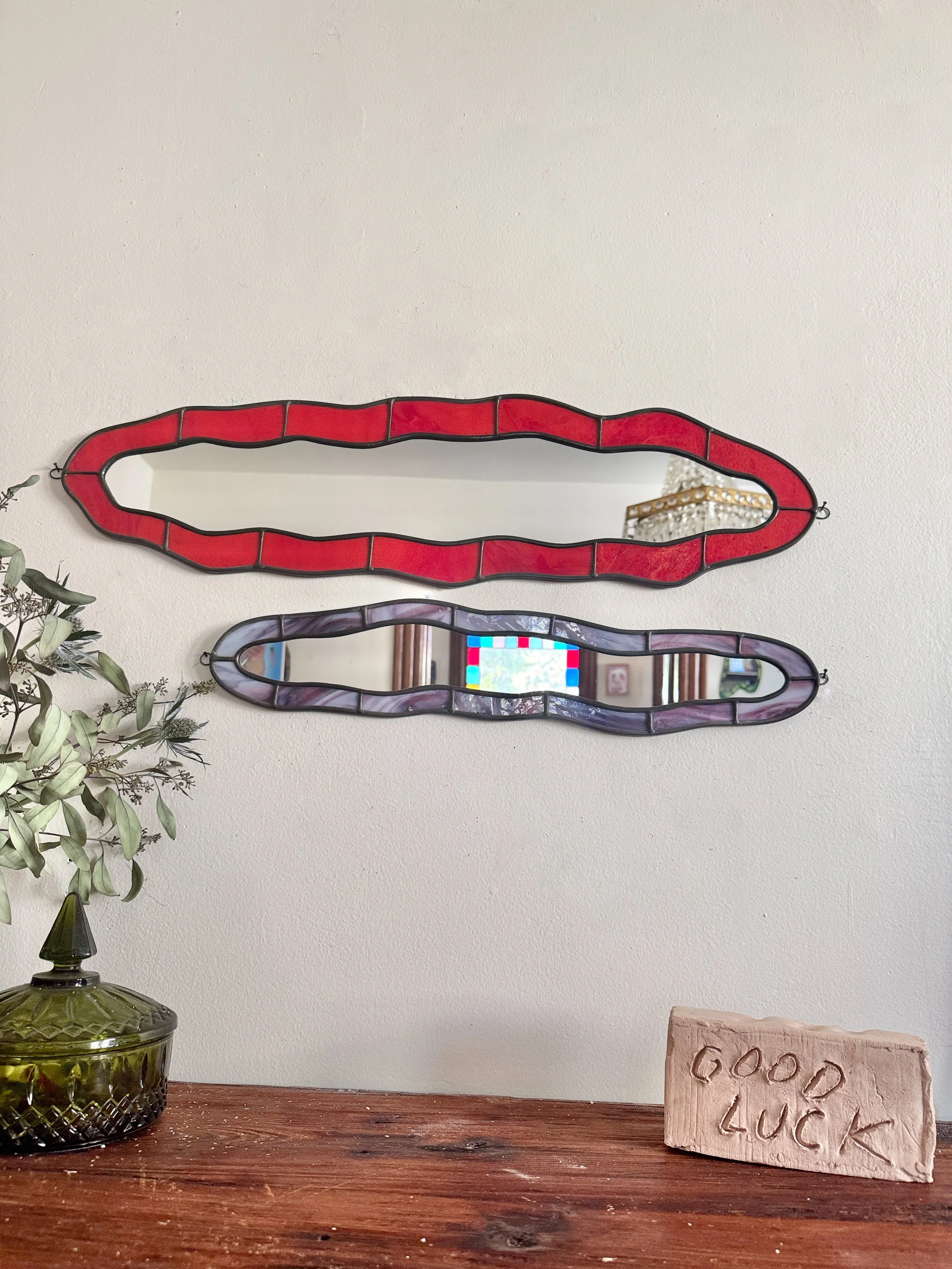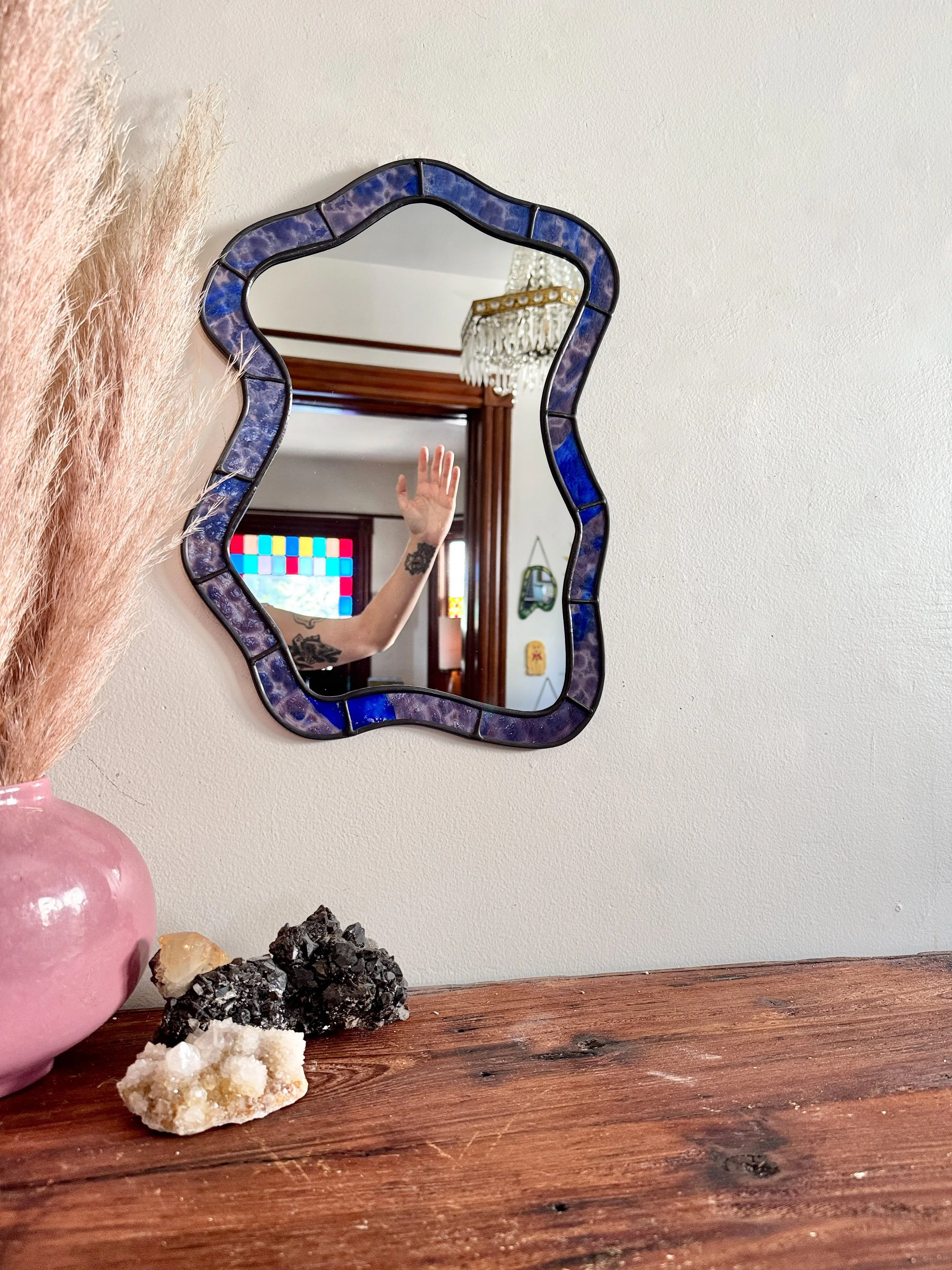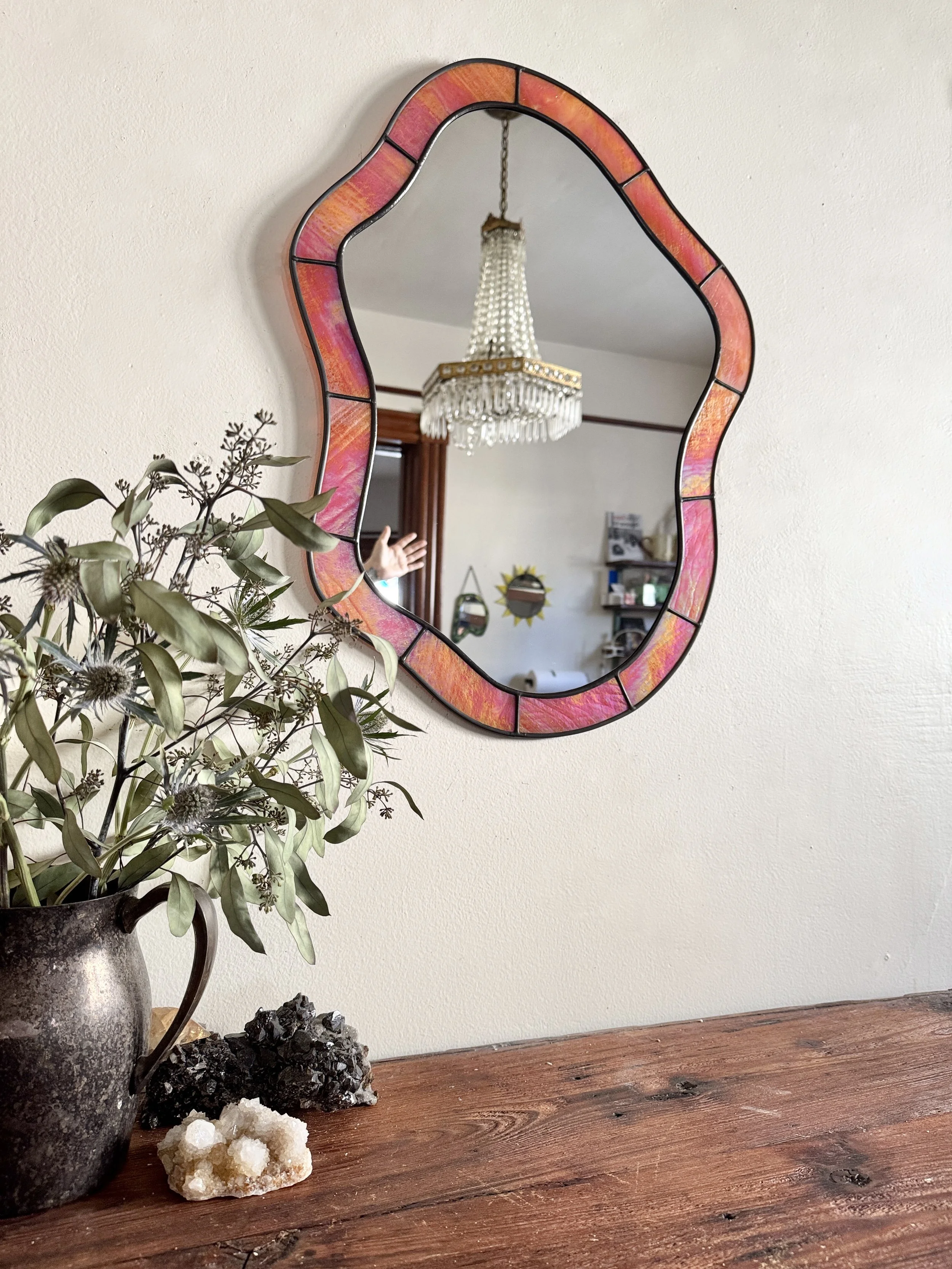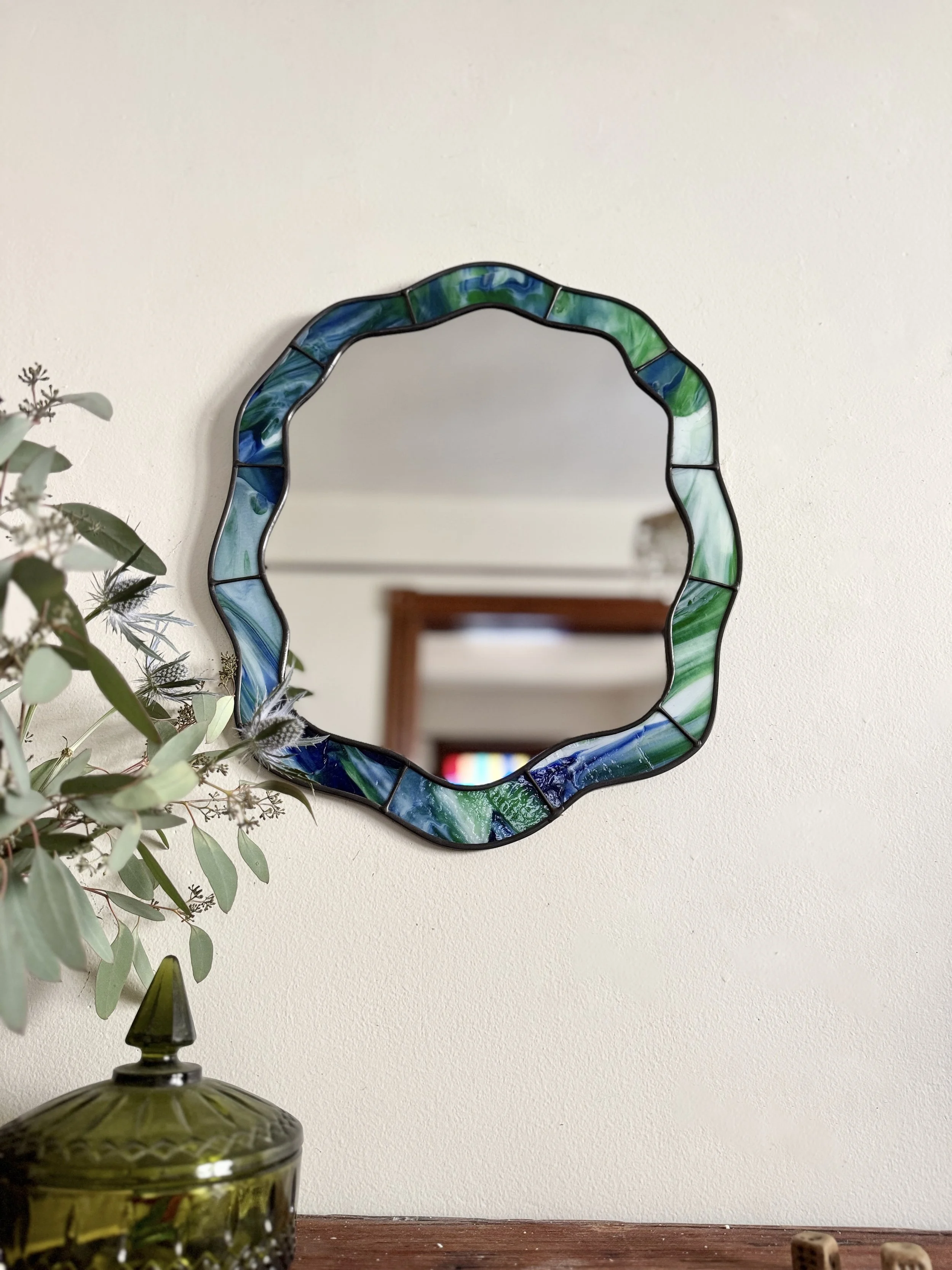 Shop Crevice Stained Glass Mirror // Raspberry Swirl $475.00 Sold out Silhouette Stained Glass Mirror // Iridescent Sea Moss $575.00 Sold out Lagoon Stained Glass Mirror // Ombré Lemon $600.00 Sold out Crevice II Stained Glass Mirror // Cherry $700.00 Sold out Curve Stained Glass Mirror // Emerald $775.00 Sold out Realm Stained Glass Mirror // Mottled Berry $775.00 Sold out Hourglass Stained Glass Mirror // Iridescent Sea $850.00 Sold out Sunburst Stained Glass Mirror // Earth $875.00 Sold out Lake Stained Glass Mirror // Iridescent Orange $1,175.00 Sold out *Imperfect (ly-perfect)* Silhouette Stained Glass Mirror // Iridescent Sunrise $275.00 Sold out RESERVED CAROLYN // Introduction to Stained Glass Class // Wavy Drops // Friday November 14th // 11am-3pm $300.00 Sold out